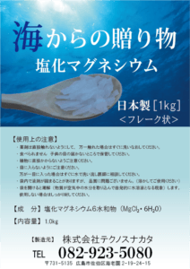 塩化マグネシウム:原料販売 [1㎏×10袋] <フレーク状>¥6,050 (税込) 在庫切れ カテゴリー: 凍結防止剤・防塵剤<サニーキーパー・ぼうじん君・雪道とおりゃんせ> 説明 説明 塩化マグネシウムNET1kgを10袋単位で原料販売いたします。 塩化マグネシウム:1kg×10袋 関連商品 塩化カルシウム サニーキーパー(5Kg入×10袋) ¥13,200 (税込) お買い物カゴに追加 塩化マグネシウム ぼうじん君(20kg入)〈6袋以上〉 ¥2,640 (税込) お買い物カゴに追加 塩化カルシウム サニーキーパー(25Kg入)〈6袋以上〉 ¥1,980 (税込) お買い物カゴに追加 塩化マグネシウム サニーキーパー(25Kg入)〈6袋以上〉 ¥1,760 (税込) お買い物カゴに追加 塩化カルシウム(1.0Kg入×14袋) ¥5,390 (税込) お買い物カゴに追加