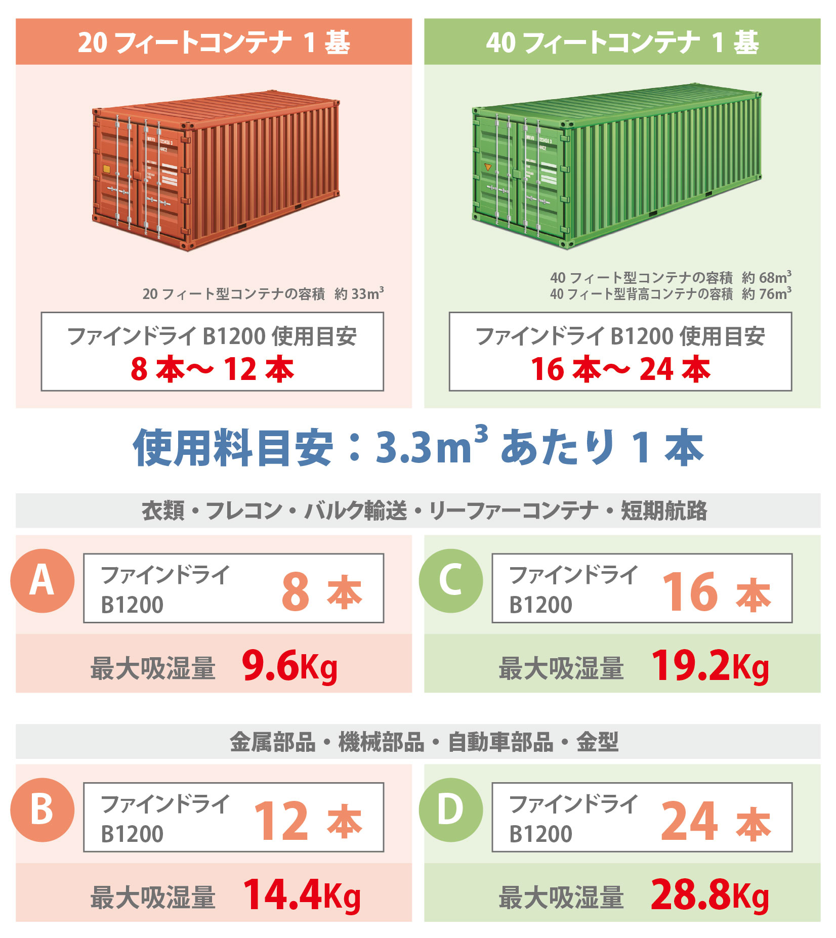 ●40フィート型に多い背高コンテナを対象とする場合、先の標準使用量に10%加えたものとします。