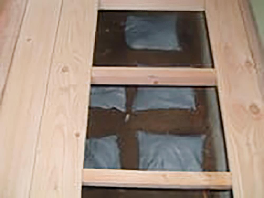 - リフォーム・既設住宅の場合床下に潜り作業します。施工方法は新築に準じます。床下への通用口は床下収納庫,格納庫,和室に多く,コンパネ・荒板、あらため口もあります